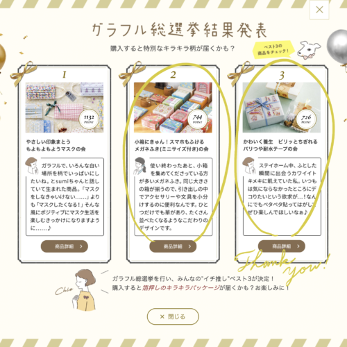 その中で行われた商品の総選挙では、ありがたいことにイラスト担当している商品を2つもランクインしていただいております。