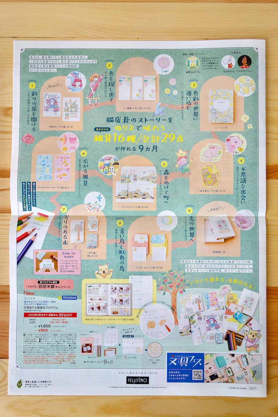 全9回のぬりえを学びながら雑貨を作る通信プログラムになっています。